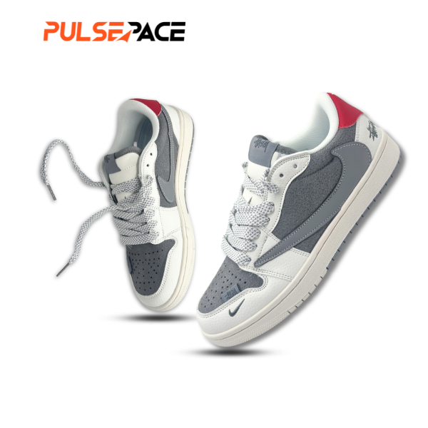 Premium Materials: The upper is constructed from high-quality grey suede paired with smooth cream-colored textile overlays for a distinct texture.